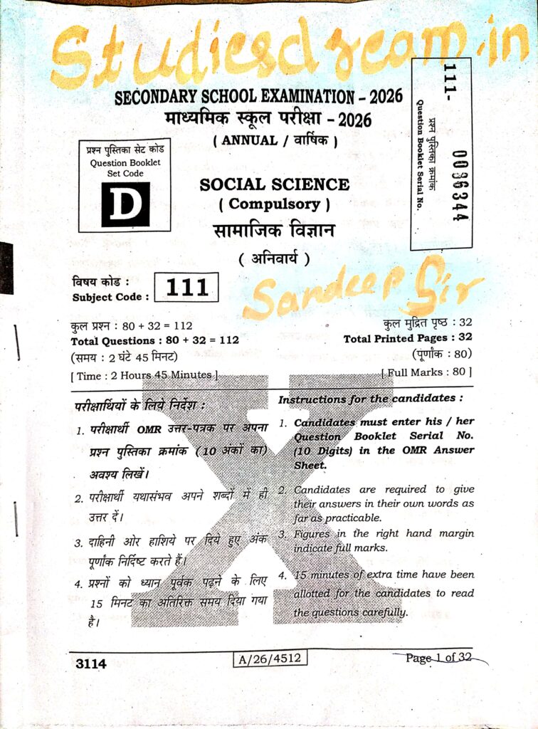 10 Class Social Science PaperDownload Link